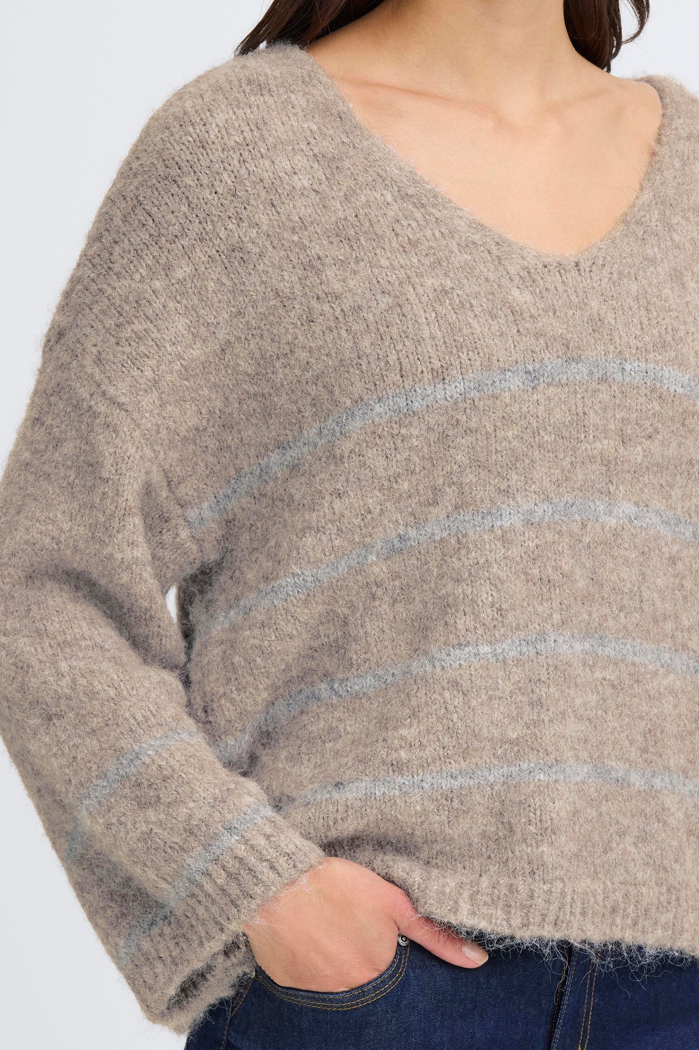 Dieser Damenpullover mit V-Ausschnitt überzeugt durch lockere Passform und lange Ärmel. Dezente Querstreifen und weiche Strickqualität sorgen für angenehmen Tragekomfort und einen vielseitigen Look.