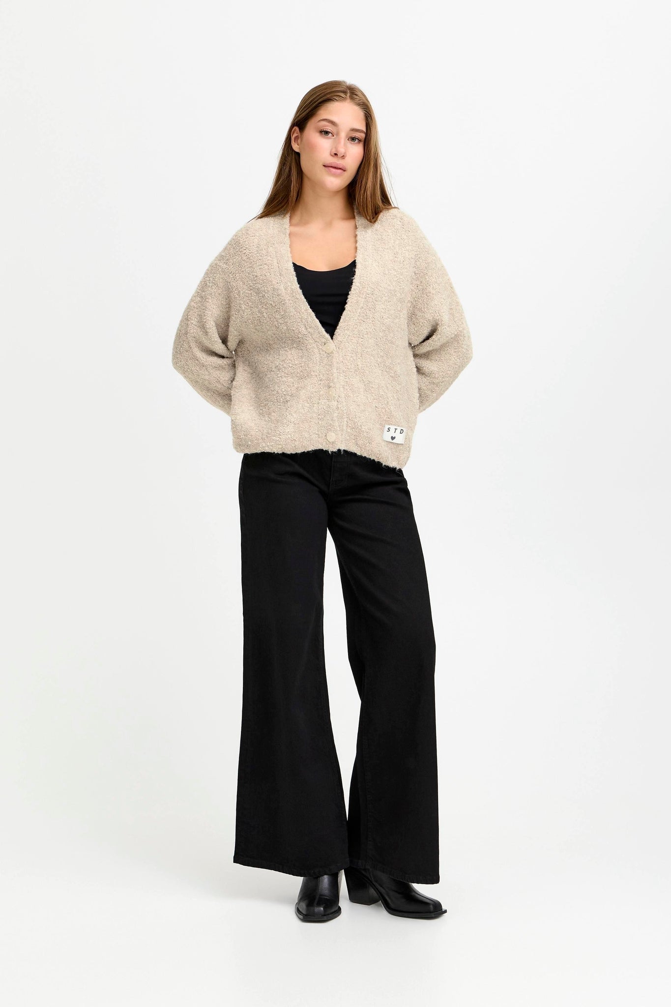Diese Damen-Cardigan besticht durch lockeren Sitz, weiche Struktur und V-Ausschnitt. Knopfleiste und dezentes Brustdetail ergänzen das Design, ideal für Alltag und vielseitige Outfits.